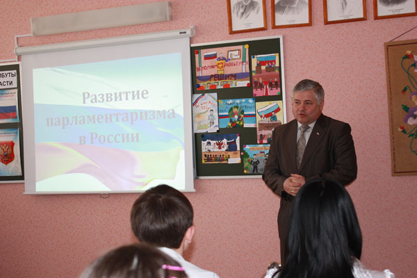 В городских школах прошли открытые уроки, посвященные 105-летию развития парламентаризма в России. Депутаты Волгодонской Думы приняли активное участие в этом мероприятии. На уроке в центре образования присутствовал председатель Думы Петр Горчанюк. История развития русского парламентаризма была трудной, бурной, подчас кровавой. Между новгородским вече, где "консенсус" достигался иногда с помощью кулаков и топоров, разгоном царем Государственной Думы и расстрелом парламента в современной России лежат века, но говорить о завершении процесса демократизации нашего государства рано.
