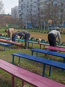 На територии агит площадки были покрашены скамейки, установлены новые урны🪵 🌿на городской территории по адресу Гагарина 2 была спилена сухая растительность и собран мусор🍂