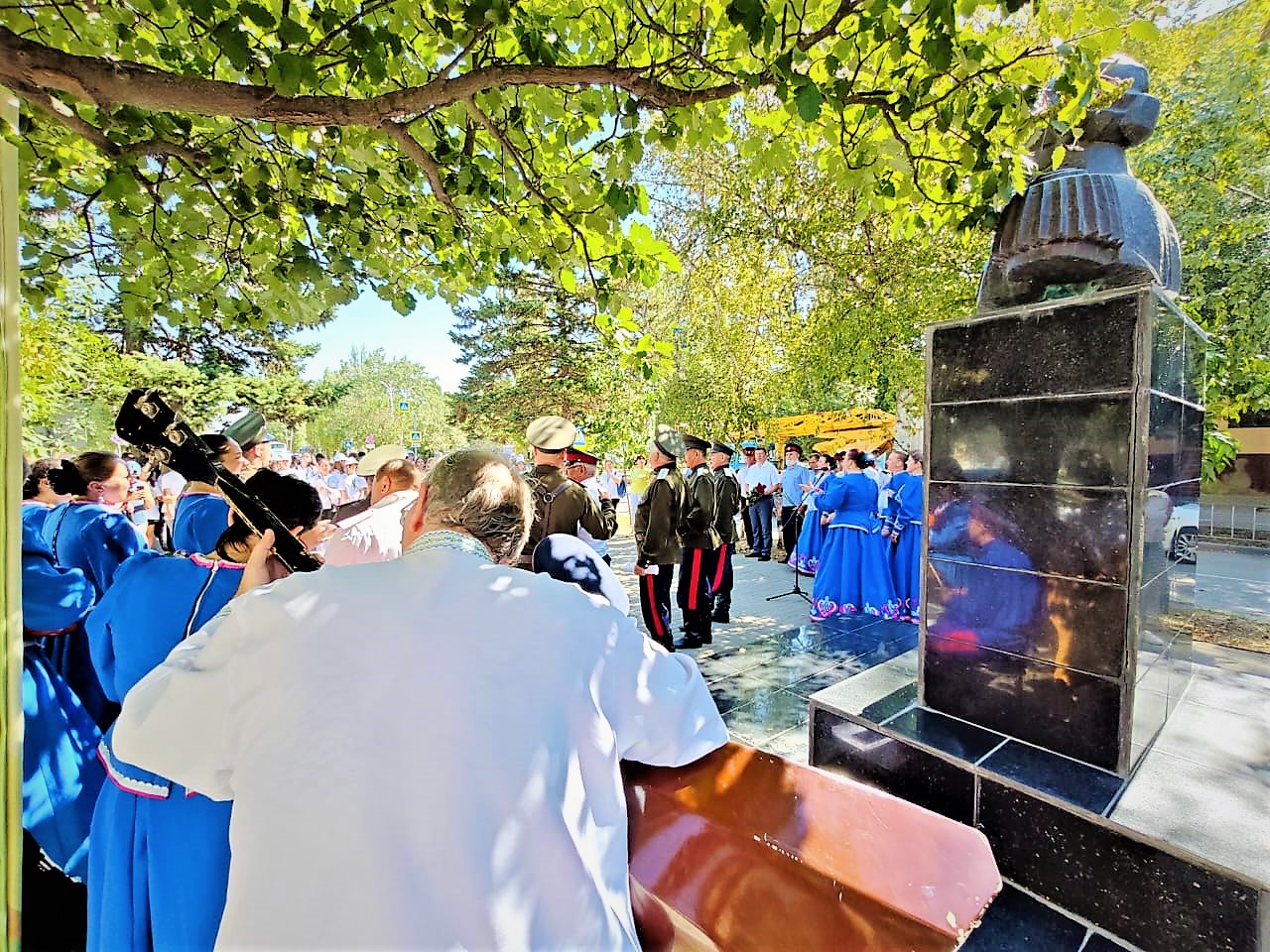 Почтить память у бюста народного героя собрались руководители города, представители Волгодонского казачьего общества, студенты и творческие коллективы дворца культуры «Октябрь».