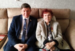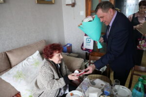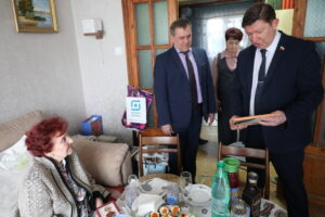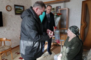 Вадим Иванович вручил юбилейную награду и выразил благодарность ветерану за вклад в Победу, пожелал сил и здоровья.