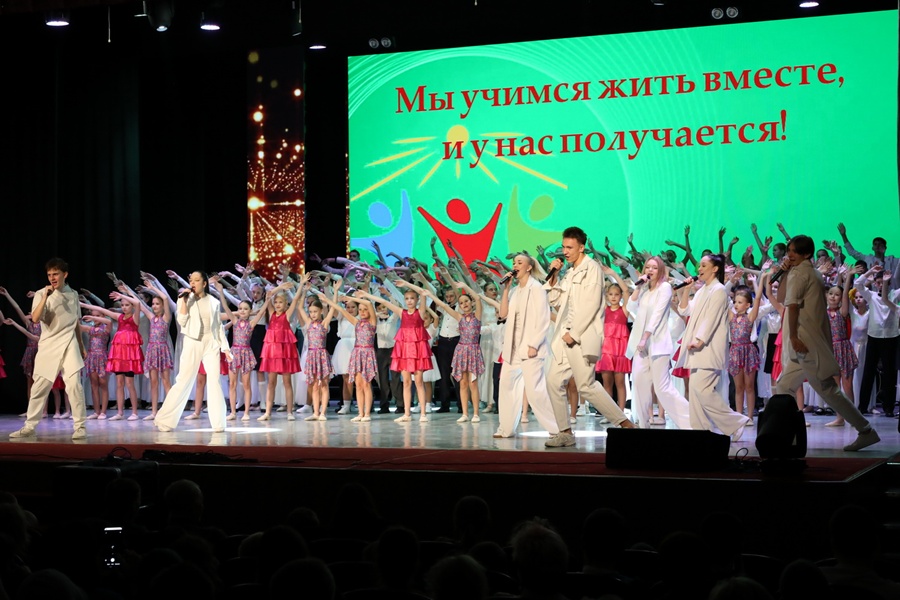 В ДК «Октябрь» состоялась концертная программа «Мы учимся жить вместе, и у нас получается». В зале собрались 400 человек: педагоги, родители и воспитанники городских образовательных учреждений. Мероприятие посетил председатель Волгодонской городской Думы Сергей Ладанов.
