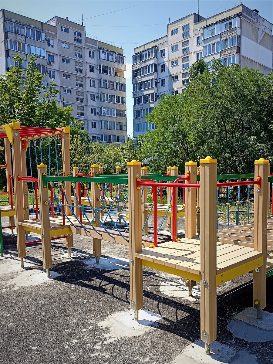 За счет благотворительных средств АО «АЭМ – технологии» во дворе дома №5 по Октябрьскому шоссе этим летом установили многофункциональную детскую игровую площадку и выполнили благоустройство прилегающей к ней территории.