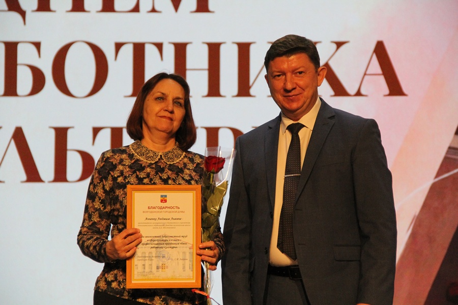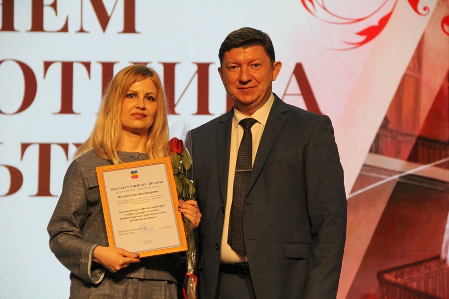 С приветственными словами к виновникам торжества обратились председатель Волгодонской городской Думы Сергей Ладанов и и.о. заместителя главы Администрации города Федор Стадников. Они вручили награды лучшим представителям отрасли: Почетные грамоты, Благодарственные письма, Благодарности председателя городской Думы и Главы города. Десять специалистов стали обладателями премии Главы города Волгодонска «За личный вклад в развитие культуры города».