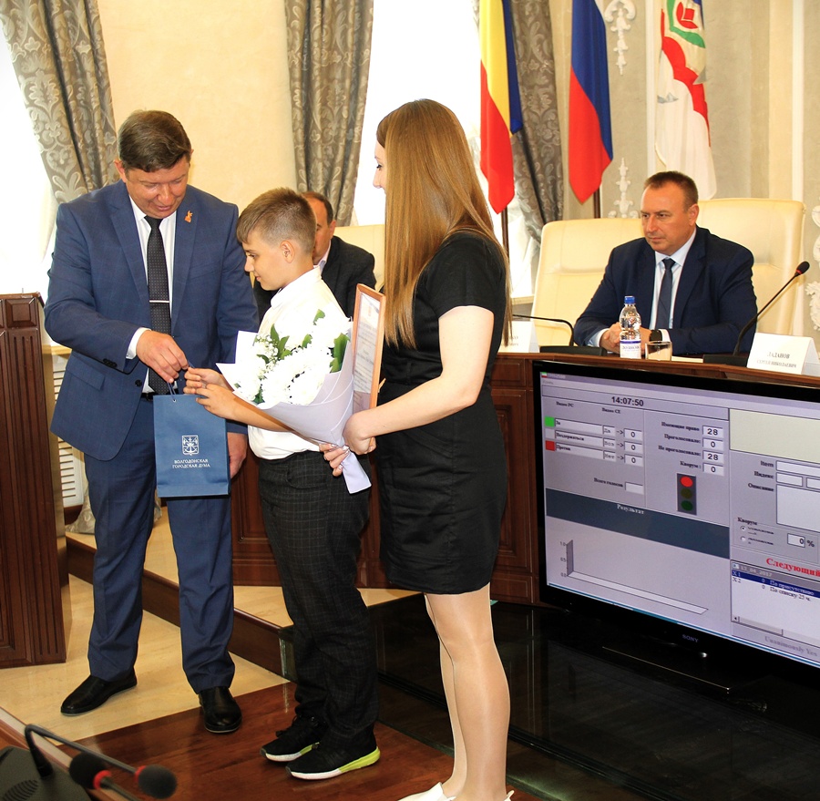 Председатель Волгодонской городской Думы – глава города Волгодонска Сергей Ладанов вручил благодарственное письмо от депутатского корпуса родителям мальчика – Дарье Андреевне и Ивану Сергеевичу, поблагодарил их за воспитание сына, а Дмитрию предложил через три года пополнить ряды молодежного парламента, поскольку смелые и решительные люди во власти всегда нужны.