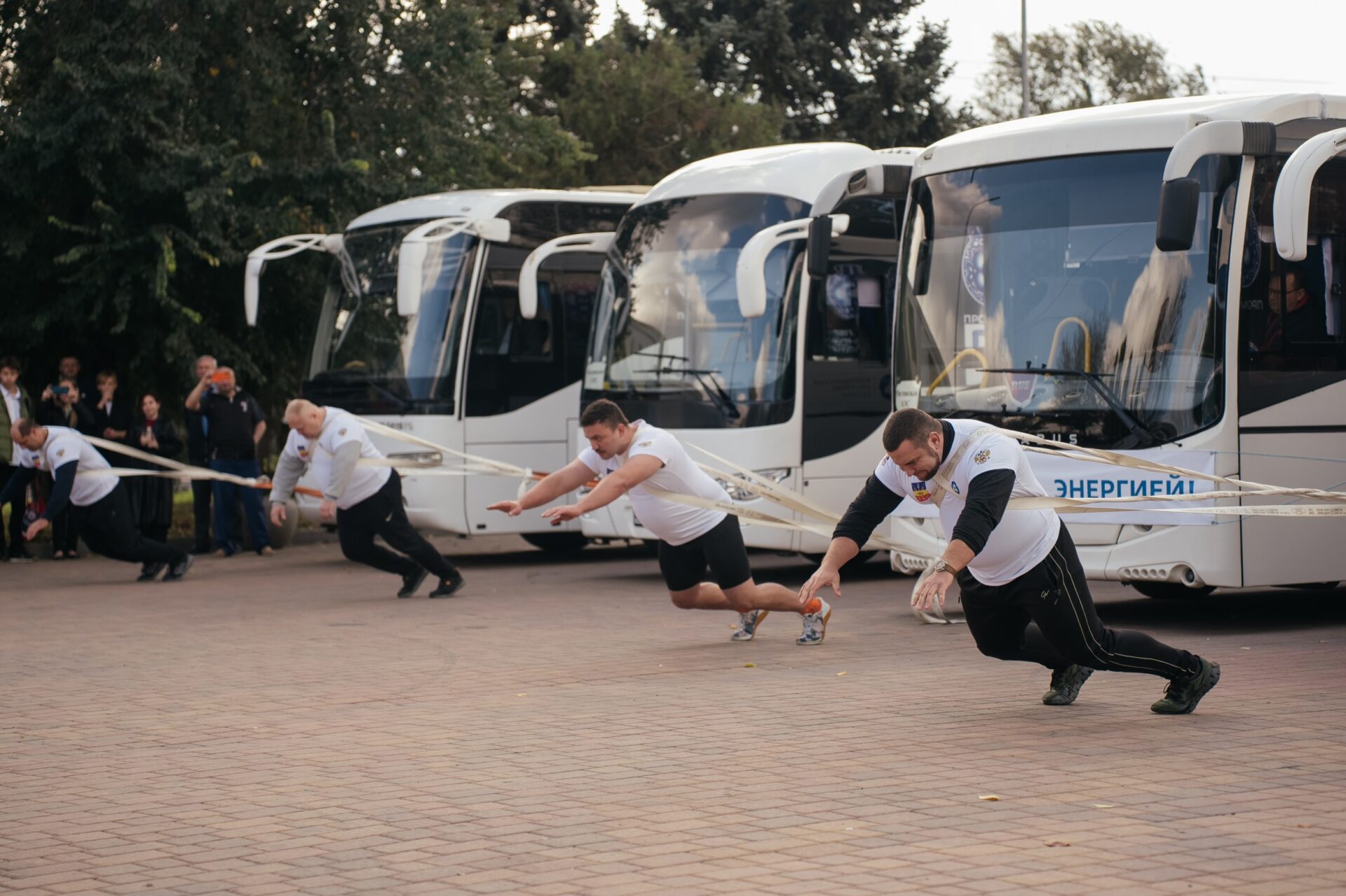 Рекорд России по параллельной буксировке автобусов установили силачи международного богатырского движения «Сильнейшая нация мира» при поддержке Ростовской атомной станции. Пяти спортсменам удалось протащить на 20 метров пять автобусов общей массой почти 68 тонн за 48 секунд.