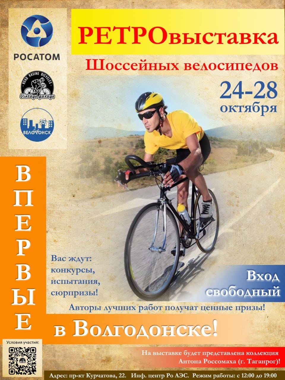 C 24 по 28 октября в рамках проекта «Велодонск» состоится ретро выставка шоссейных велосипедов. Организаторы — завод Атоммаш (входит в машиностроительный дивизион Росатома), Ростовская АЭС и администрация Волгодонска.