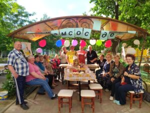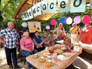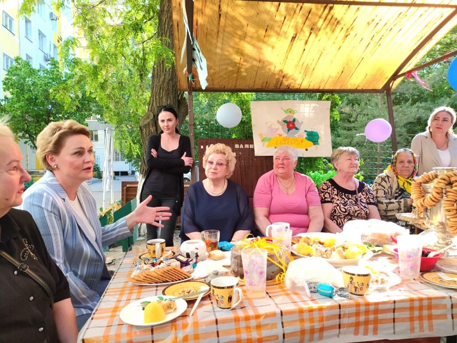 Дружные соседи накрыли во дворе стол, на который принесли свои кулинарные творения, а Георгий Ковалевский дополнил его вкусными пирогами. А кроме дружных посиделок за чаепитием, жителей объединили веселые конкурсы, сценки и другие развлечения.