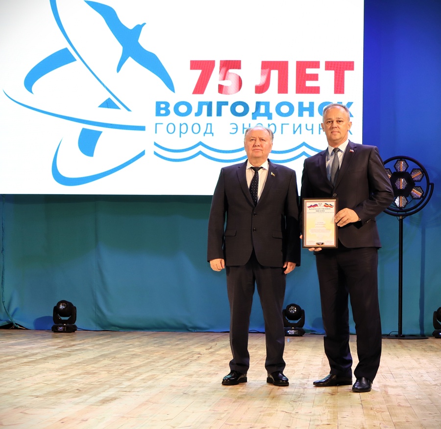 Перед началом концерта горожан поздравили и вручили заслуженные награды заместитель губернатора Ростовской области Игорь Гуськов, зампредседателя Законодательного собрания донского региона Андрей Харченко, временно исполняющий полномочия главы города Дмитрий Вельможко и председатель Волгодонской городской Думы Сергей Ладанов. Среди награжденных – депутаты Волгодонской городской Думы и сотрудники аппарата.
