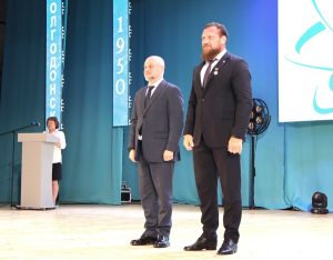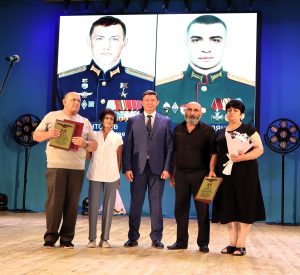 За заслуги, связанные с развитием Волгодонска, общепризнанный личный вклад в развитие науки и образования он вручил знак Почетного гражданина Волгодонска руководителю ВИТИ НИЯУ МИФИ Валентине Руденко, а семьям Подскребалиных и Тамазян – знаки «Семейная доблесть» — за воспитание сыновей, отдавших жизни за Родину. Зрители в зале поддержали вручение награды родителям героев продолжительными аплодисментами.
