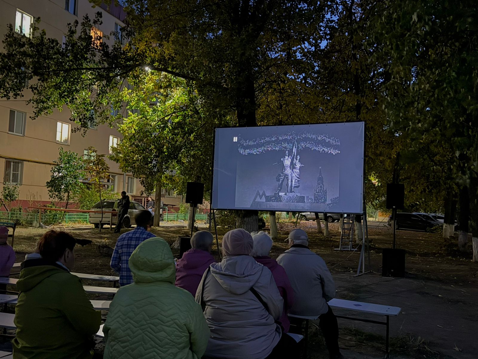 Первый киносеанс состоялся во дворе домов № 87 по улице Горького. Несмотря на осеннюю погоду, он собрал десятки жителей, которые с интересом посмотрели классику советского кинематографа – фильм «Слезы капали». Мероприятие создало особую атмосферу соседского общения и совместного досуга.