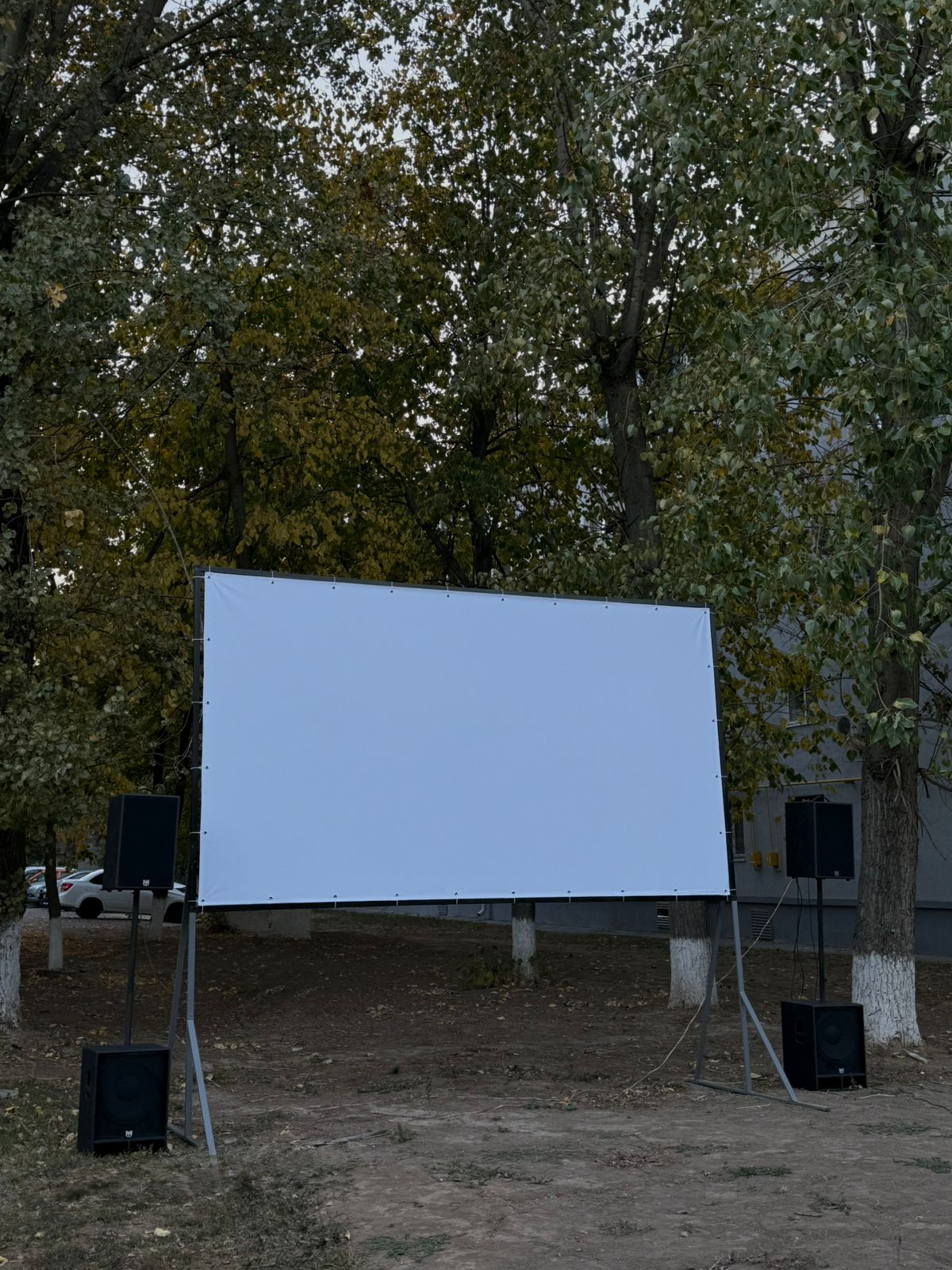 На выигранные средства было приобретено современное оборудование: проектор, экран и звуковые колонки, что позволило организовать качественный кинопоказ на свежем воздухе.