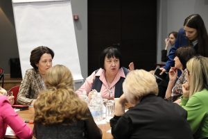 После пленарной части участницы в соответствии со своим родом деятельности продолжили работу в группах по восьми тематическим направлениям: «Женщина-мама», «Женщина-волонтер», «Женщина-общественник», «Женщина-предприниматель», «Женщина в науке и образовании», «Женщина на производстве», «Женщина-политик», «Женщина в культуре и спорте». Им предстояло сформулировать ключевые вызовы в каждой сфере и предложить пути их решения. Затем каждая группа представила свои идеи, которые легли в основу общей резолюции форума. Завершилась встреча экскурсией по производственному корпусу «Атоммаша».