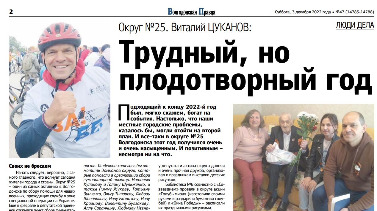 Подходящий к концу 2022-й год был, мягко скажем, богат на события. Настолько, что наши местные городские проблемы, казалось бы, могли отойти на второй план. И все-таки в округе №25 Волгодонска этот год получился очень и очень насыщенным. И позитивным – несмотря ни на что.