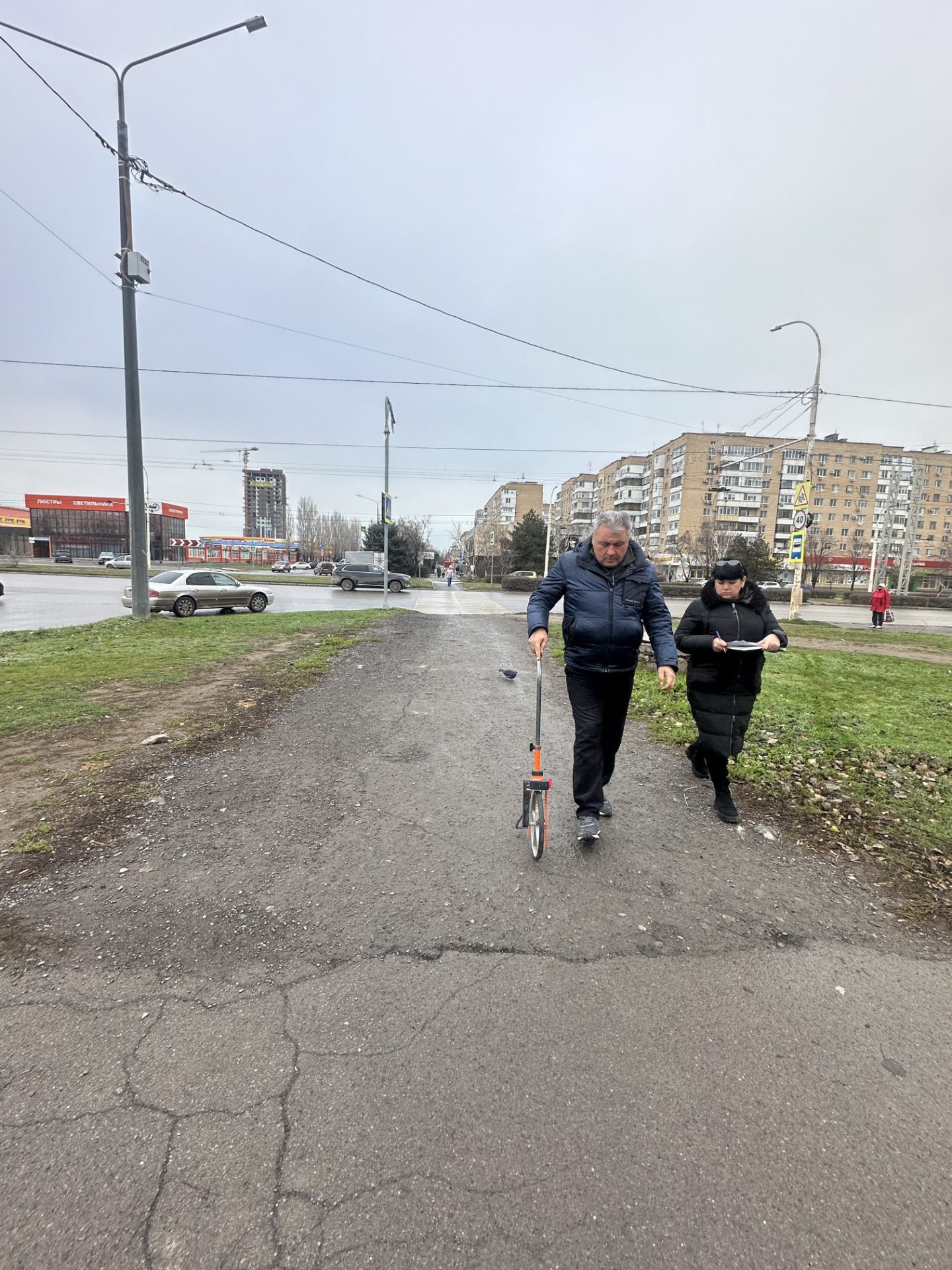В декабре 2025 г. в 21 округе началась работа по освоению бюджетных депутатских средств на 2026 год, для составления сметы расходов.  Размер пешеходной дороги к пешеходному переходу по ул Академика Королева измеряли с представителем МКУ ,,ДСиГХ,, и Галеян А.Д.