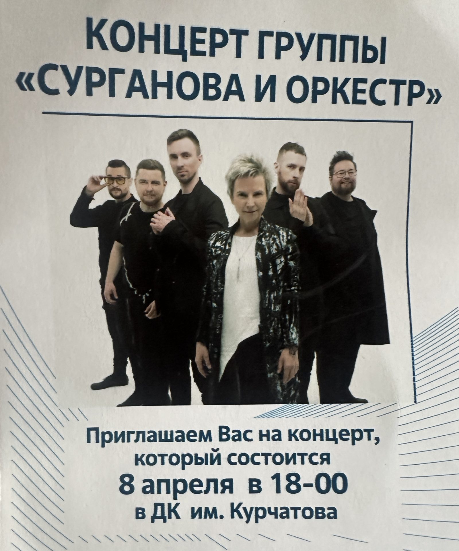 8 апреля 2026 г. РОАЭС и Волгодонская городская Дума  предоставила 21 округу билеты для посещения концерта группы «Сурганова и Оркестр»!