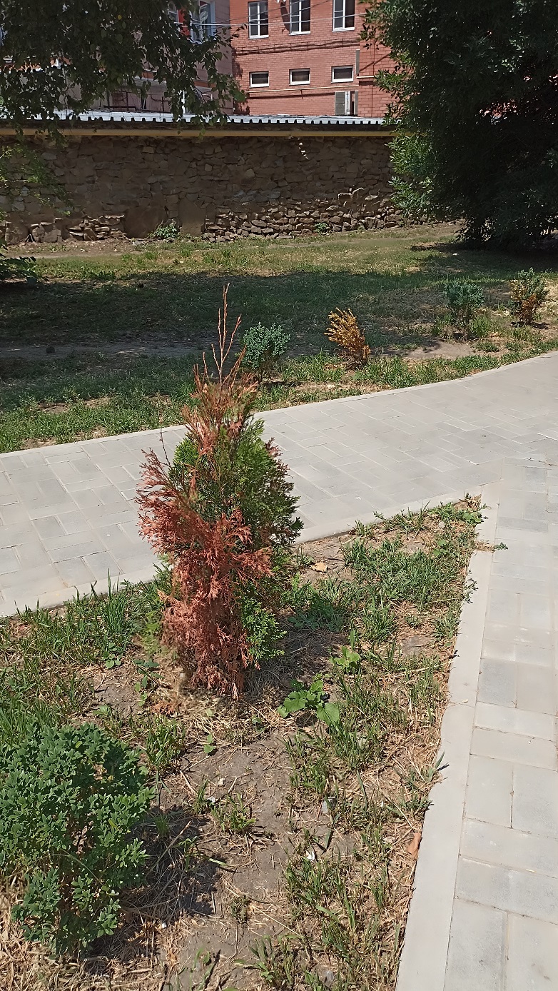 Неравнодушные и активные жители округа, не дождались обещанного полива. Как смогли – полили, очень жалко засыхающие кусты самшита и туи.