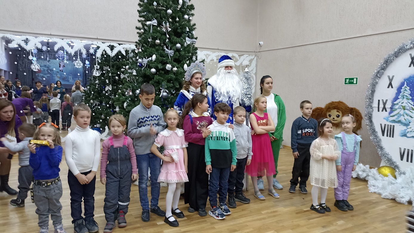 Ребята с интересом смотрели новогоднее представление «Чебурахнутый Новый год в космосе», увидели увлекательные приключения любимых героев советских мультфильмов – Чебурашку, Крокодила Гену, Бабу-Ягу, Кощея Бессмертного, обитателей тропических и жарких стран, динозавров, фантастических роботов и, конечно же Деда Мороза и Снегурочку.