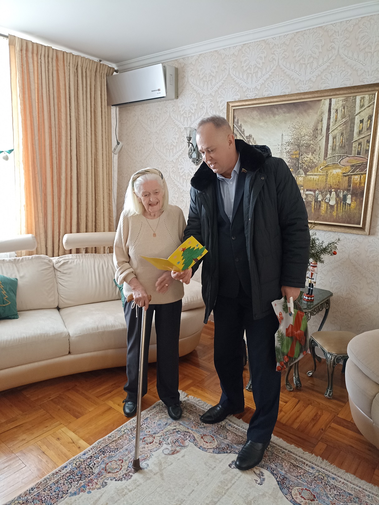По традиции, накануне новогодних праздников, депутат избирательного округа, член политического совета ПП «Единая Россия» Игорь Батлуков и председатель Совета ветеранов округа Лидия Заева посетили на дому ветеранов – тружеников тыла, поздравили с наступающим Новым годом и Рождеством Христовым: Макееву Веру Ивановну, Селиванову Марию Семёновну Слепокурову Татьяну Ильиничну, Франчук Тамару Васильевну, Переверзеву Дину Константиновну, Плыгунову Варвару Евстафьевну. Побывали в гостях у Почетного жителя города Людмилы Ивановны Рудь и у Ольги Михайловны Борисовой, мамы участника специальной военной операции. Подарили сладкие подарки и новогодние открытки, сделанные учениками 9 школы.