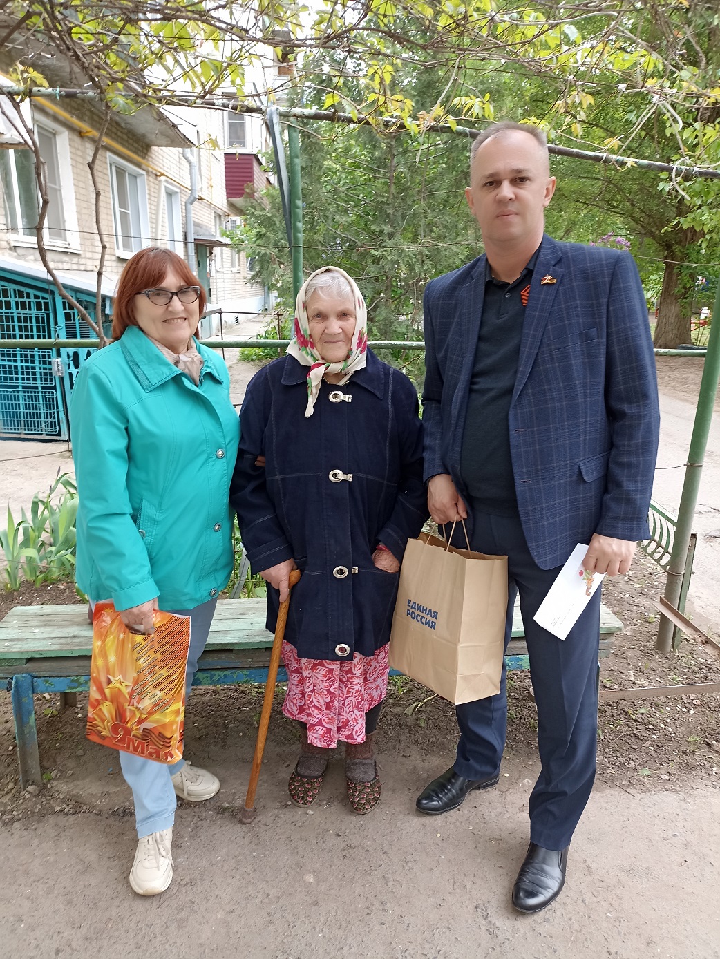Заместитель председателя Волгодонской Думы – главы города Волгодонска, депутат избирательного округа №3 Игорь Владимирович Батлуков вместе с активистами поздравили  с Днем Победы ветеранов, тружеников тыла, вручил подарки и праздничные поздравления. Ветераны  благодарили депутата и активистов за внимание и заботу.