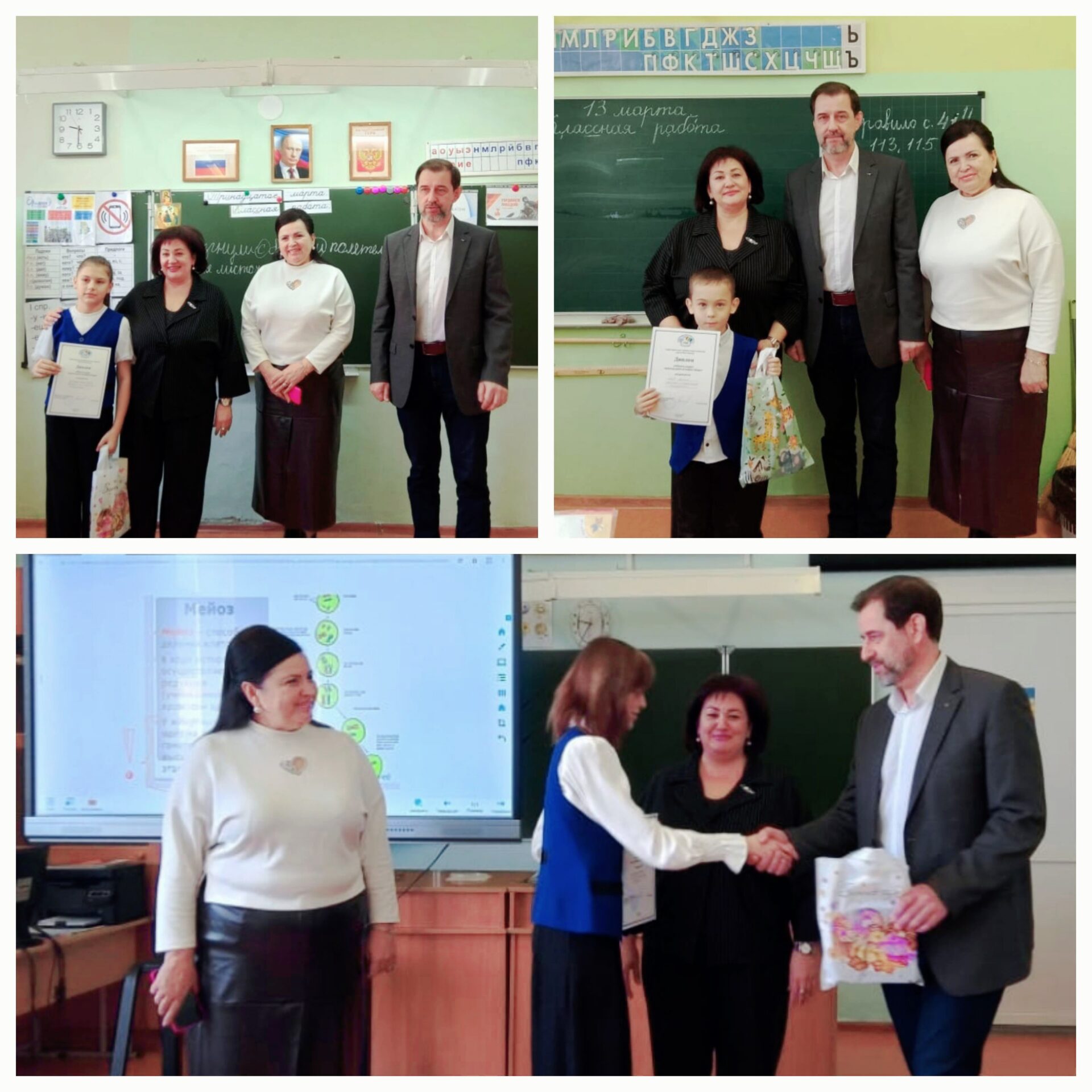 Поздравить ребят, вручить дипломы и подарки пришли Председатель ТИК г. Волгодонска Филиппова Е.К., депутат Волгодонской городской Думы по избирательному округу №7 Брежнев А.А. и директор школы №8 Хлоповских М.Н.
