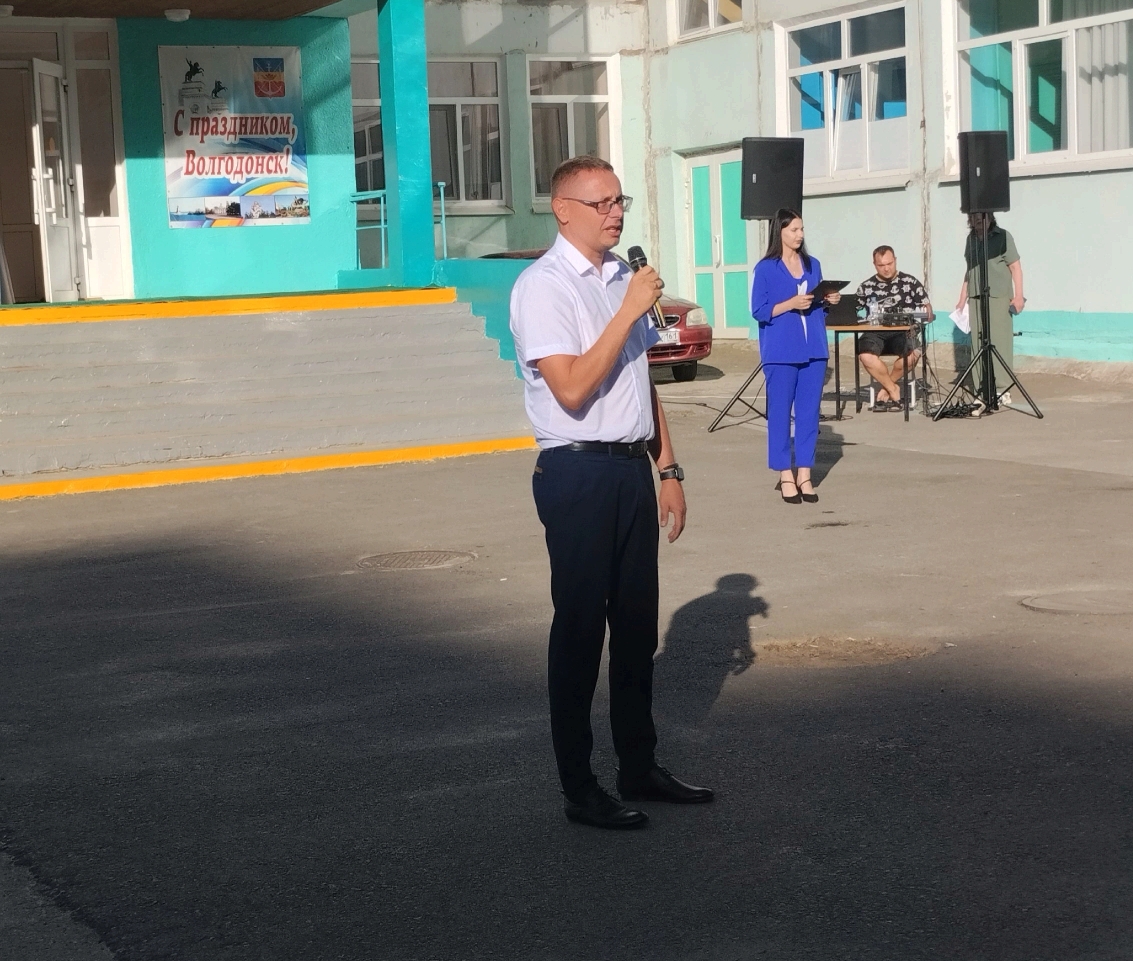 Также от имени главы Администрации города Волгодонска с поздравлениями выступил гость — заместитель главы Администрации города Волгодонска по строительству, Погодин Никита Аркадьевич.