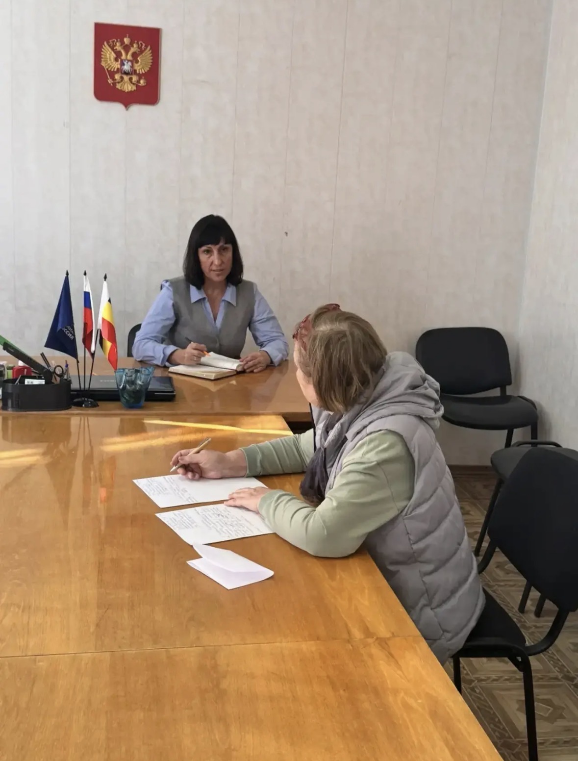 Наталья Александровна внимательно выслушала каждого жителя, пришедшего на приём. Вопросы были разные: личный (урегулирование соседских отношений) и коллективный (с просьбой посодействовать в подключении межквартальных сетей водоснабжения к участкам, выданным многодетным семьям, по переулку Согласия).