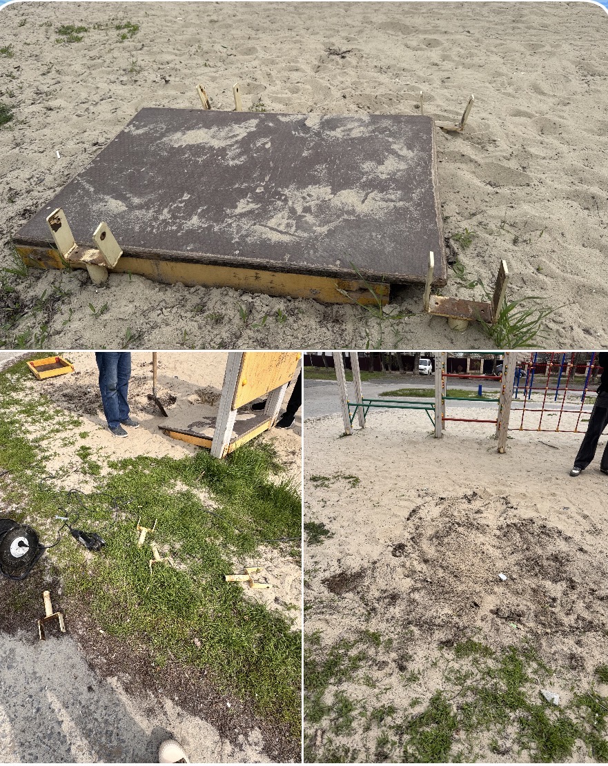 14 апреля на территории 9 округа на ул.Кооперативная, 23 а, благодаря депутату Н.А.Голинской и с помощью подрядной организации, на детской площадке срезаны опасные железные закладные, которые торчали в следствии вандального обращения с детской площадкой.