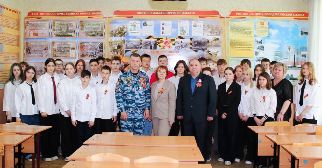Депутат округа № 4 Георгий Ковалевский вместе с Алексеем Муза, председателем городской общественной организации «Воины горячих точек», провели в школе № 9 Урок мужества. В преддверии юбилея Великой Победы рассказали семиклассникам о Великой Отечественной войне, боевых конфликтах, в которых участвовала страна, и, конечно, о сегодняшней спецоперации.
