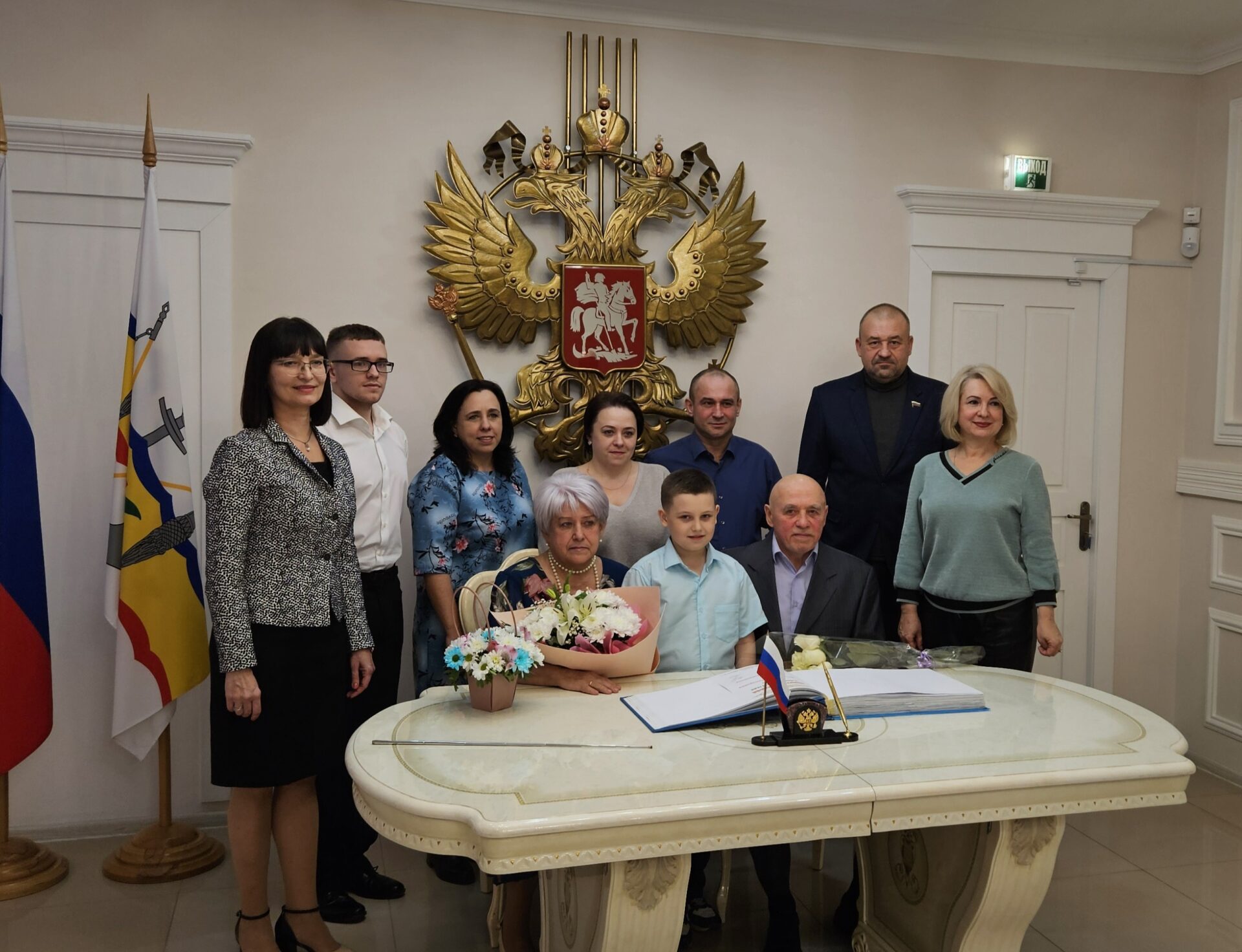 Юбиляров семейной жизни чествовали в торжественной обстановке в городском Отделе ЗАГС. Кроме родных и близких, Валерия Владимировича и Раису Кузьминичну пришел поздравить и их депутат по 13 округу Геннадий Кудрявцев.