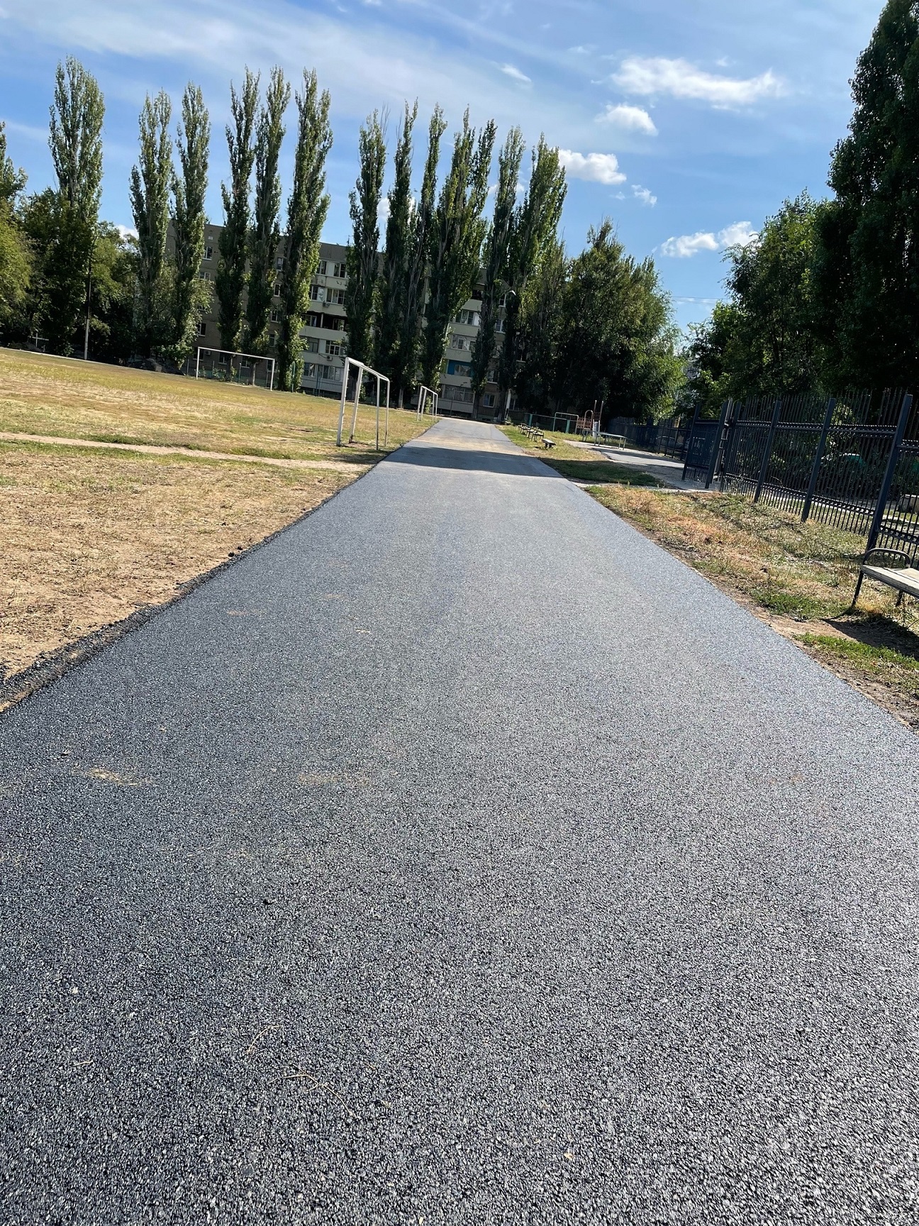 На сегодняшний день уже полностью уложен новый асфальт на беговых дорожках, волейбольной и баскетбольной площадках, в зоне для воркаута.