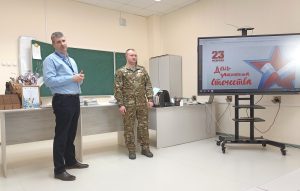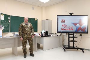 20.02.2026 в МБОУ «ИТ Гимназии «Юнона» в преддверии праздника — Дня защитника Отечества, прошли уроки мужества. В гости к учащимся 10 «Б», 11 «А» и 4 «А» классов пришли депутат избирательного округа 23 Гоок Андрей Эдуардович и ветеран СВО Прядихин Борис Александрович. Учащиеся четвертого класса рассказали о своём участии в сборе гуманитарной помощи участникам специальной военной операции. Борис Александрович рассказал о себе, о службе в зоне СВО, о наградах и ранениях, об испытаниях и переживаниях, с которыми сталкивались каждый день. Школьники слушали внимательно и задавали вопросы о чертах характера, необходимых воину. Это храбрость, отвага, умение не поддаваться паники, огромное значение имеет физическая подготовка для выполнения поставленных задач. В конце встречи депутат поздравил ветерана с праздником, поблагодарил за интересную беседу и вручил подарок.