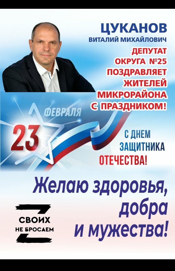 С Днем Защитника Отечества в этом году жителей микрорайона совместно с депутатом поздравляли учащиеся 3б класса 23 школы и воспитанники ДК «Созвездие».Традиционная выставка рисунков в приемной депутата и онлайн — акция на социальных страничках округа №25 и Виталия Цуканова.