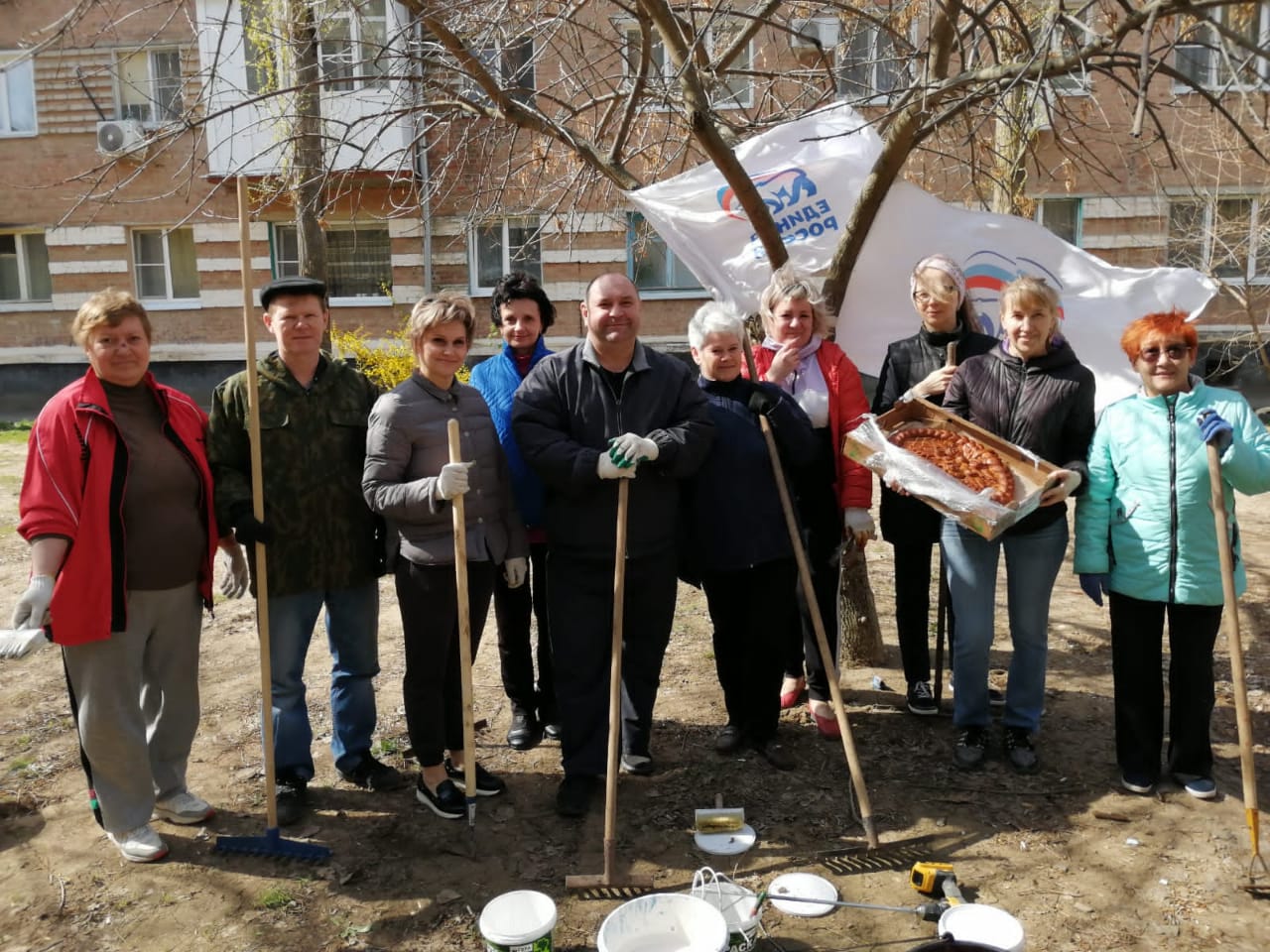 А затем субботник по благоустройству был организован и в самом 4-м микрорайоне с помощью Георгия Андреевича. В ТСЖ «Дон» (улица Ленина, 78) провели уборку территории, посадили тюльпаны на придомовых клумбах, покрасили дворовые конструкции.