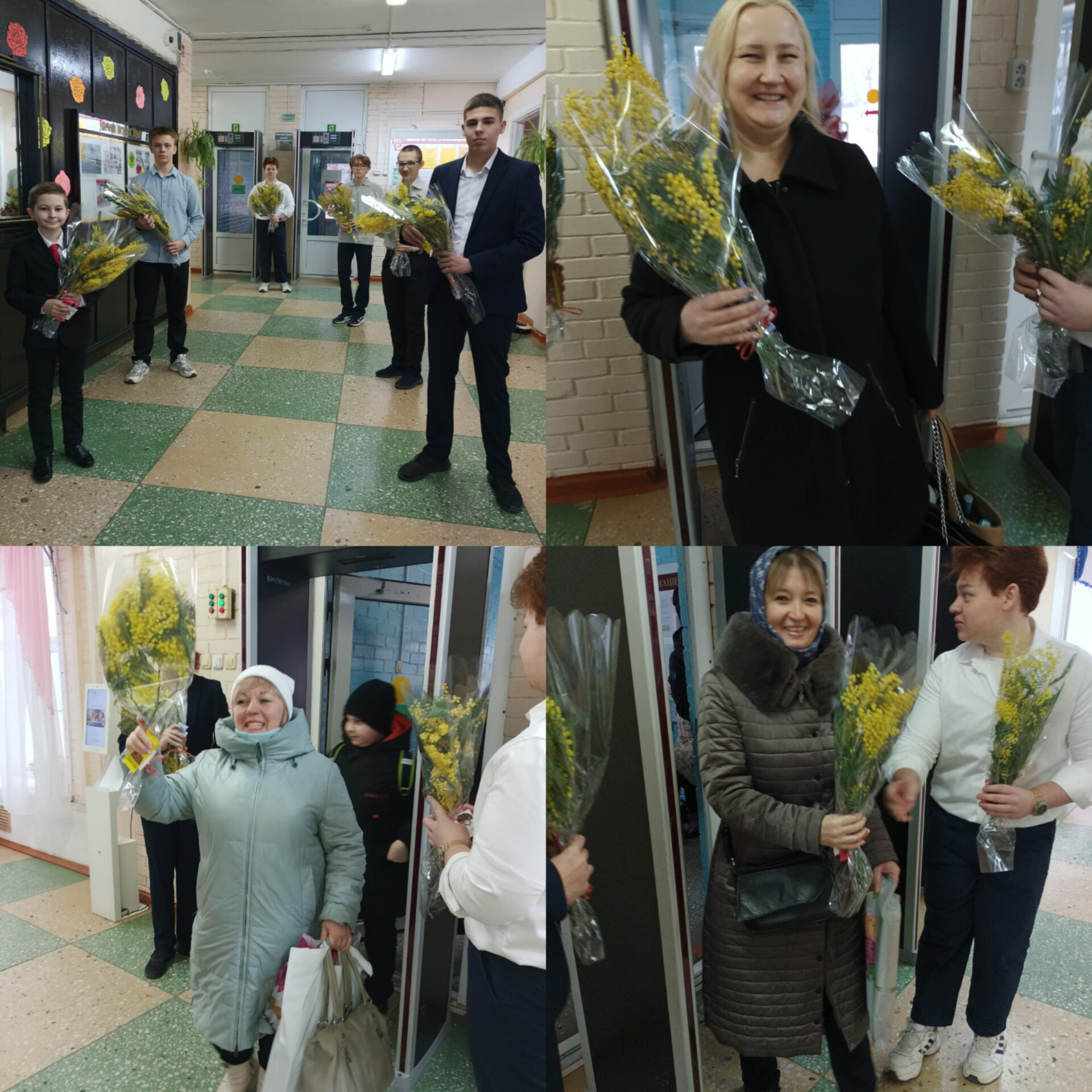 В 13-м округе поздравили учителей школы №22 с наступающим 8 Марта. Дети встречали своих педагогов с цветами 7 марта.