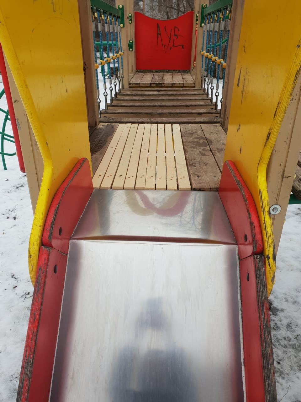 На детской площадке в сквере «Дубравушка» часть деревянной конструкции горки пришла в негодность. За счет личных средств депутата Н. А. Голинской горка отремонтированна.