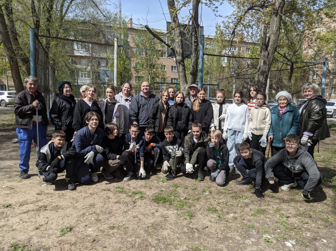 На субботник вышли домкомы, члены совета ветеранов микрорайона, активисты, очень помогли ребята из 6»А» класса школы № 9. Его возглавил депутат, который помог с мешками и перчатками. А также инвентарь и технику предоставила управляющая компания «Чайка-Дон».
