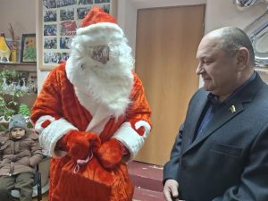 Депутат поздравил детей вместе с Дедом Морозом, в роли которого выступил председатель ТОС «Вектор развития» Николай Чуреков. Вручили им сладкие новогодние наборы от ООО «Полесье» и сертификаты на подарки от неравнодушных работников предприятий Волгодонска. «С Новым годом, ребята! – сказал Георгий Ковалевский. — Пусть ваши папы поскорее возвращаются домой с победой!»
