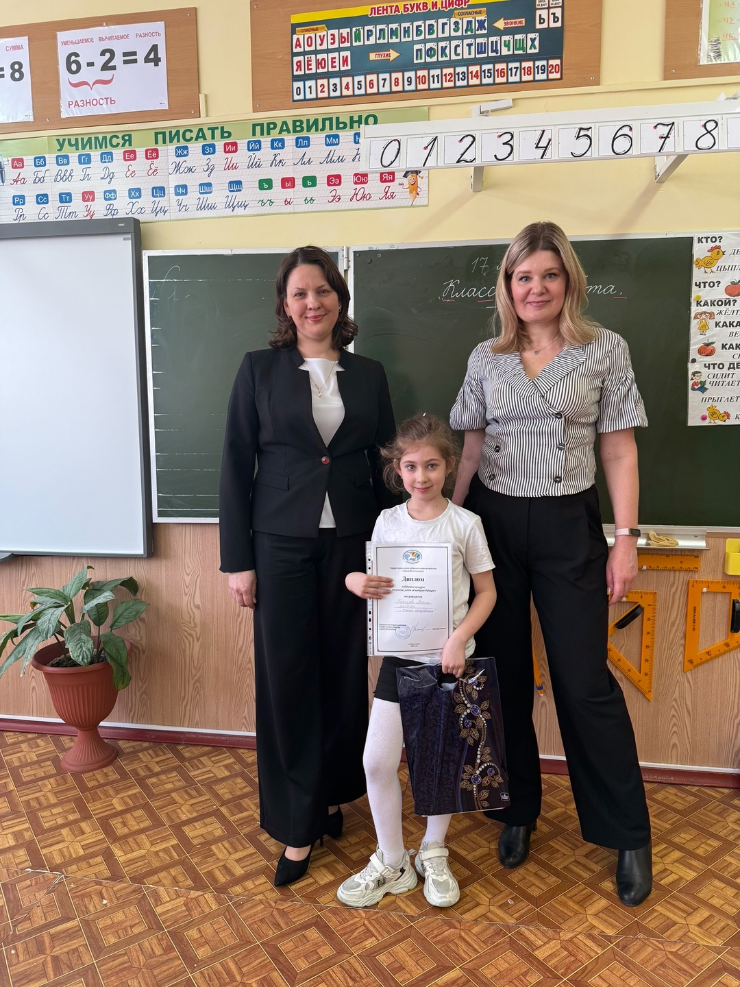 Торжественное награждение победителей прошло прямо в классных аудиториях. Председатель Территориальной избирательной комиссии города Волгодонска Елена Клайдовна Филиппова, Александриенко Наталия Владимировна, начальник юридической службы аппарата Волгодонской городской Думы и помощник депутата Сергея Александровича Асташкина Светлана Владимировна Илько пришли, чтобы поздравить девочек с заслуженными наградами.